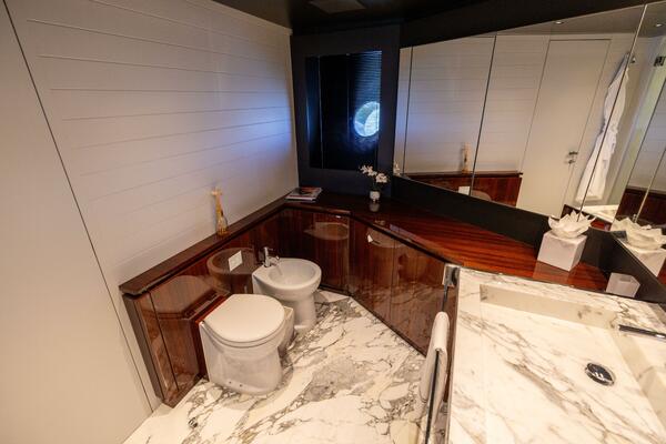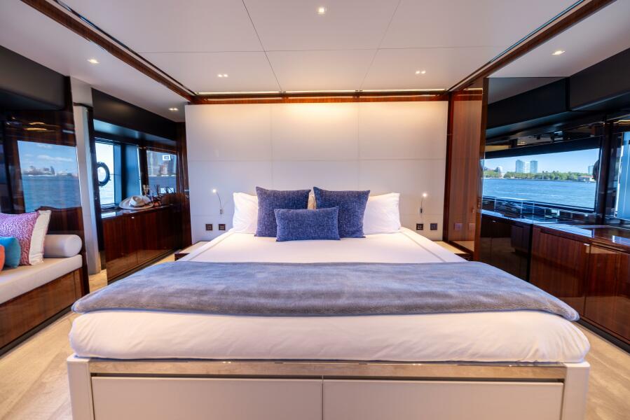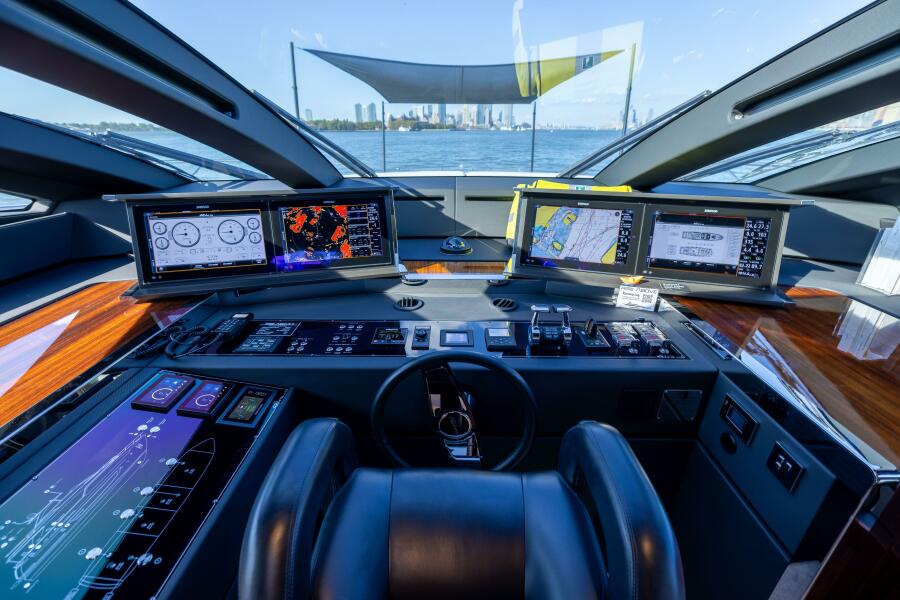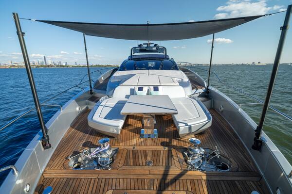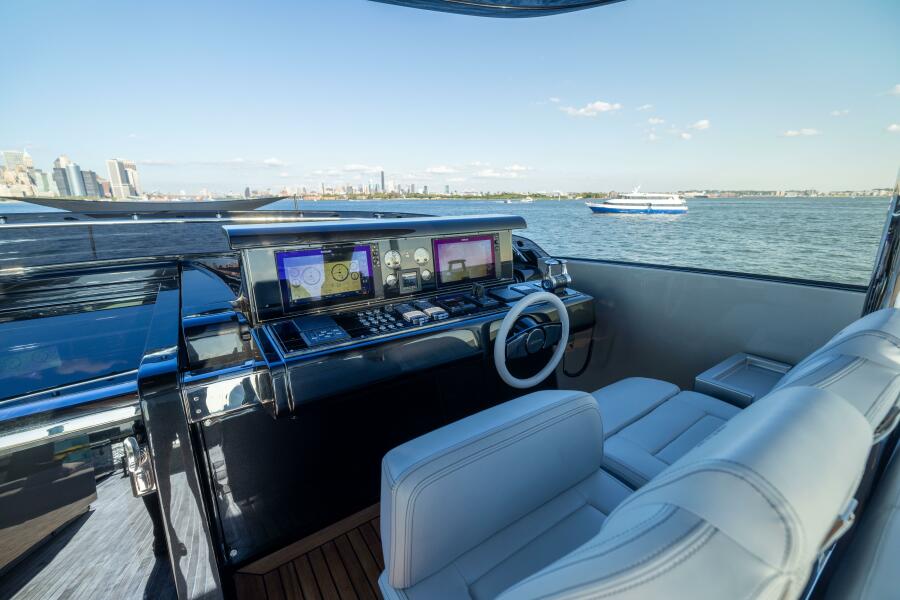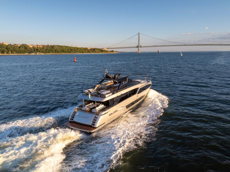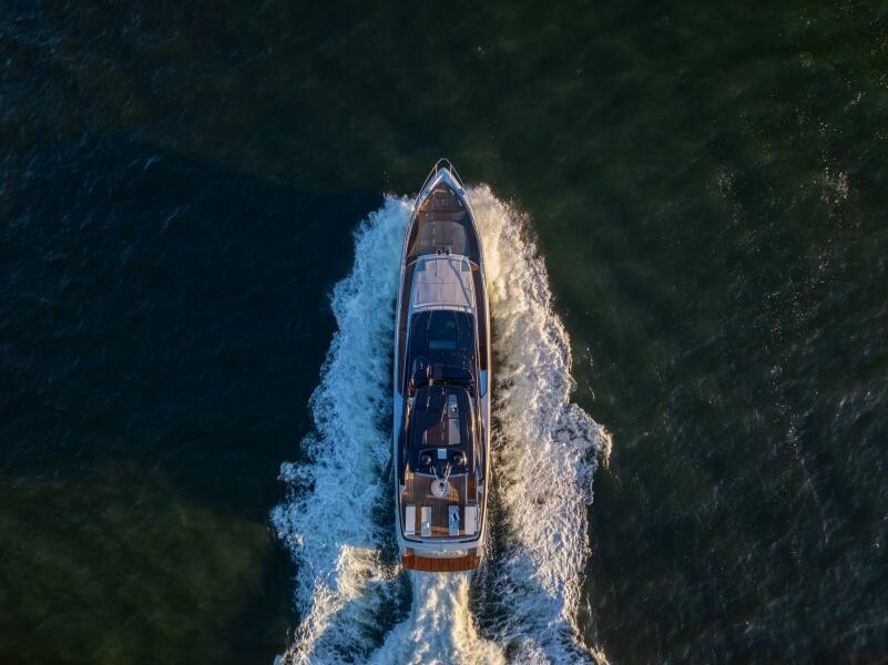 “This model Riva 90 Argo has surpassed my expectations in rough seas and overall clients level of comfort. The deep V hull design coupled with dual Seakeepers and hydraulic fin stabilization delivers an unexpected level of performance and comfort. 24 kn cruise delivers a very low decibel optimal running speed with little on no vibration compared to similar boats”.