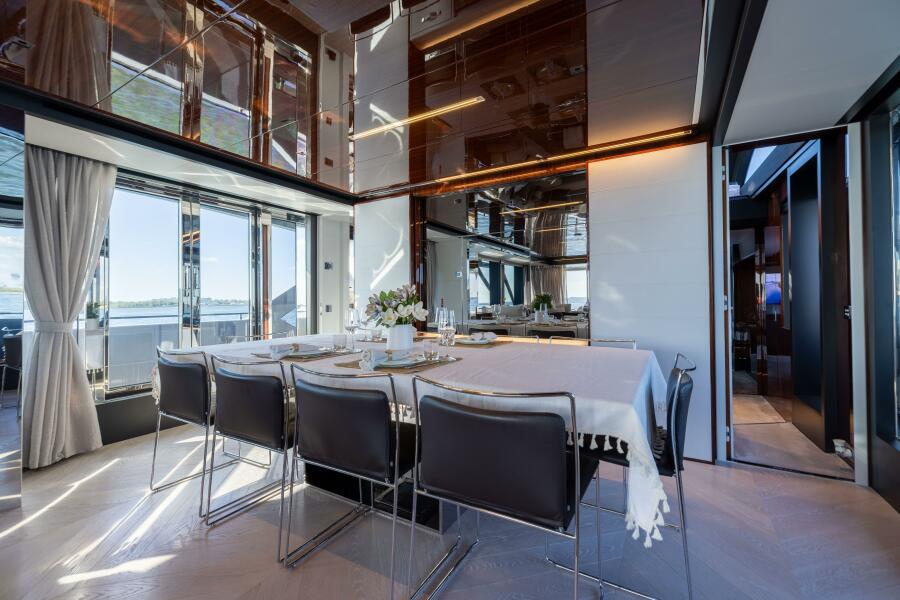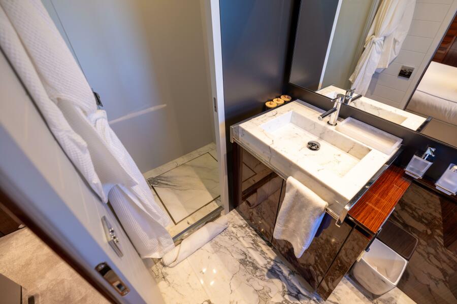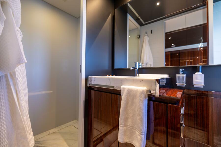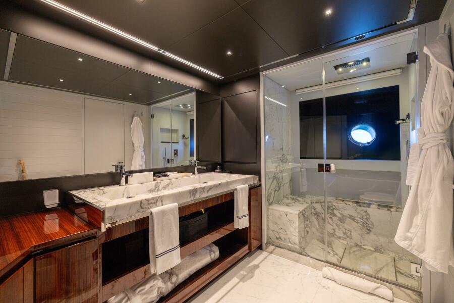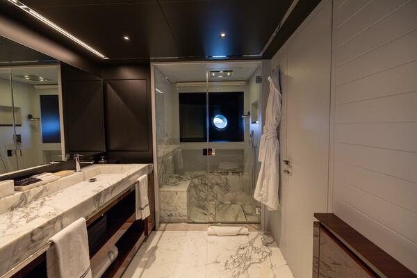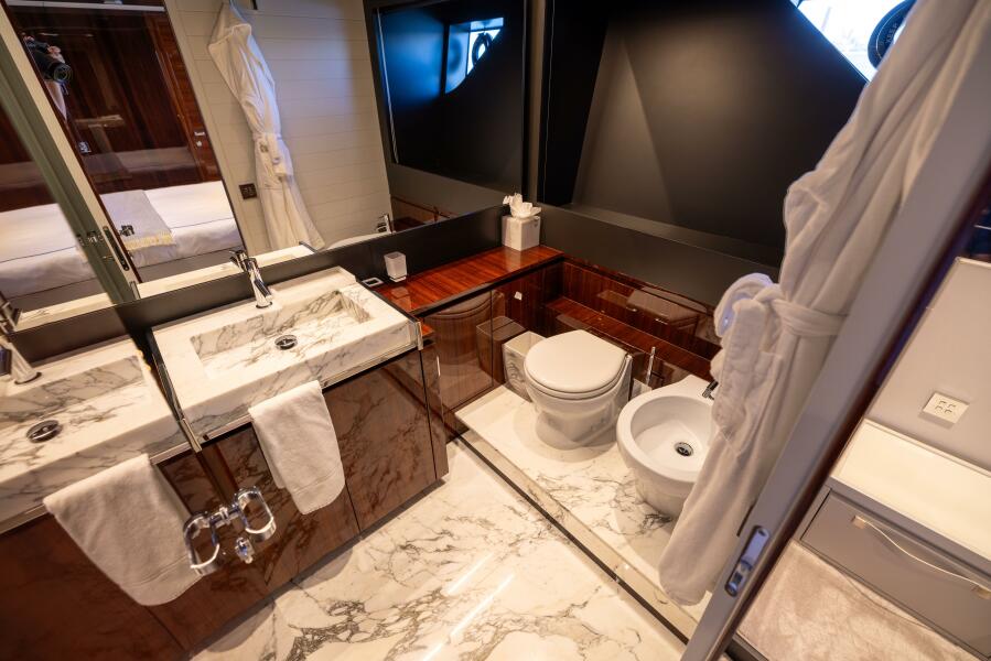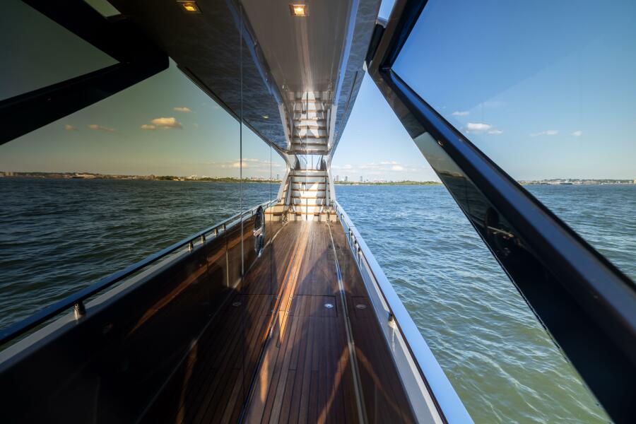 “This model Riva 90 Argo has surpassed my expectations in rough seas and overall clients level of comfort. The deep V hull design coupled with dual Seakeepers and hydraulic fin stabilization delivers an unexpected level of performance and comfort. 24 kn cruise delivers a very low decibel optimal running speed with little on no vibration compared to similar boats”.