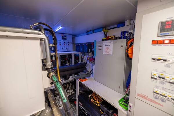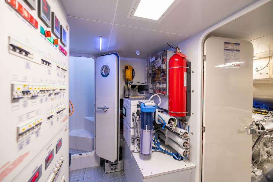 - FM200 fire extinguishing system in the engine room with automatic shut down of engines and safety override