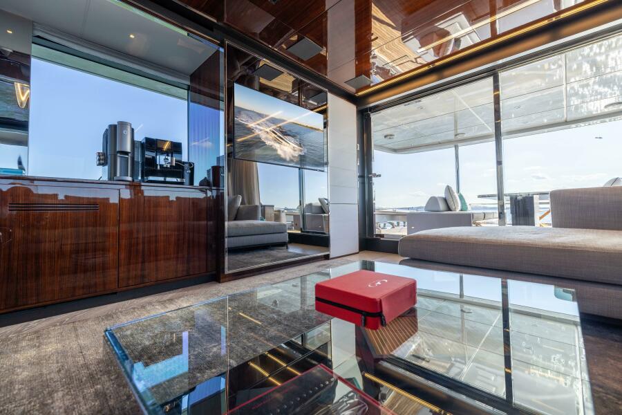 The 90’ Riva Argo, “RISE Above III”, stands out as a remarkable example of Riva’s new generation of flybridge yachts. Its futuristic design combines legendary inspiration with cutting-edge onboard technology, making it a true icon in the world of luxury yachting. The yacht’s instantly recognizable, forward-thinking aesthetic features sleek, dynamic lines, giving it a powerful and striking presence on the water. Inside, the spacious and elegantly appointed interiors blend Riva’s signature style with the influence of renowned Italian designers, offering a perfect balance of comfort, luxury, and sophisticated craftsmanship.