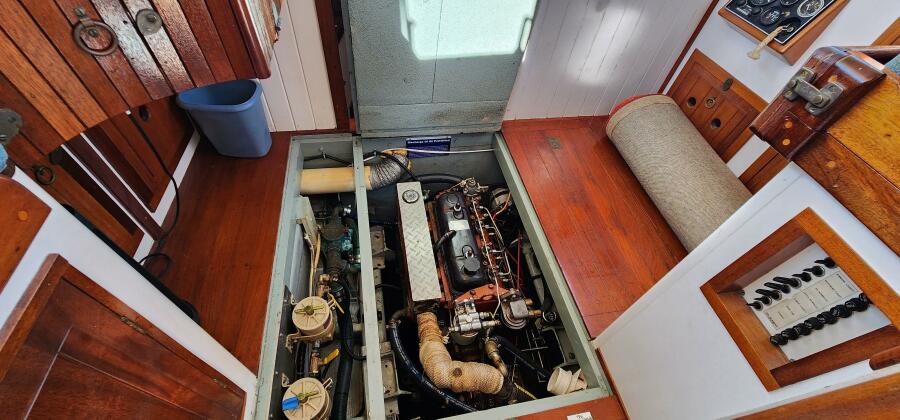 Hesper's engine is a 4-cylinder, naturally aspirated 60hp Westerbeke diesel. The engine has 2890 hours and runs very well. Her seller has recently been through the engine and has added a new electric fuel lift pump, a reconditioned fuel injector pump and reconditioned fuel injectors. She runs well and has more than enough power to propel the boat comfortably when the weather gets rough. The engine is located under the sole of the pilothouse and gives great access to all components. Oil changes are made easy by an electric oil change pump