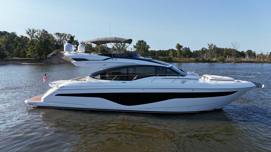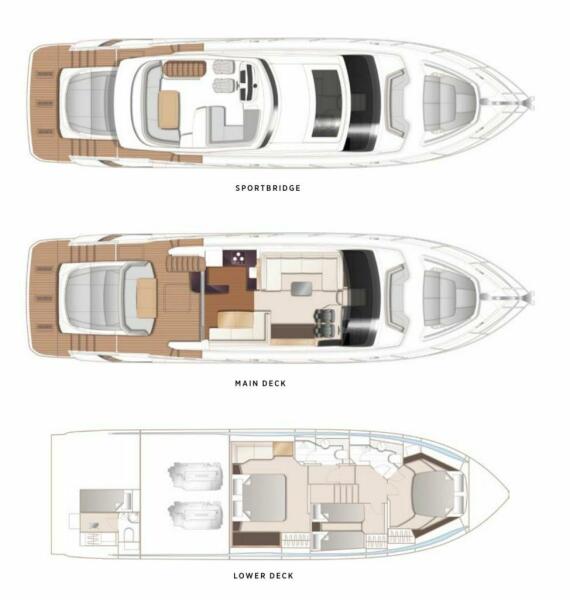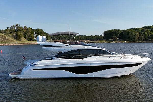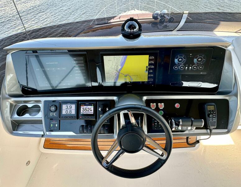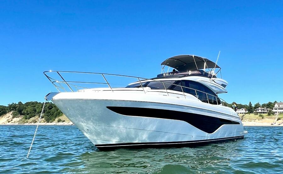 JBYS TRADE - 2023 Princess Yachts S62 - Powered By twin MAN V8 1200's w/ only 540 hours... Maintained by an experienced full time captain & JBYS's Service Team - She's dialed in and ready for her next adventure! Upgraded Features & Custom Options: 3 StateRoom / 2 Head Layout Upgraded Garmin Electronics Package Upgraded / Custom Audio & Visual Systems SeaKeeper 9 Gyro Stabilization System Custom Decor & Upgraded Soft Goods - Throughout Teak Decking - Cockpit, Swim Platform & Steps High Gloss Exterior Tables - Cockpit, FlyBridge & Bow Exterior Covers Electric Actuated - Bimini Top Cockpit Docking Station Yacht Controller And More....